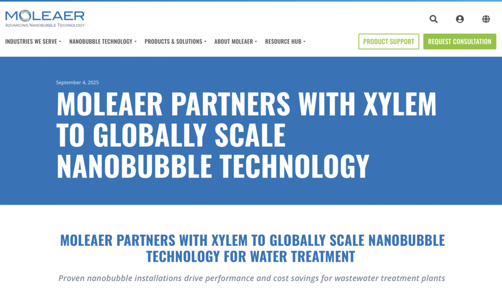 โมเลอร์จับมือไซเล็ม ขยายเทคโนโลยีนาโนบับเบิลสู่ระดับโลก